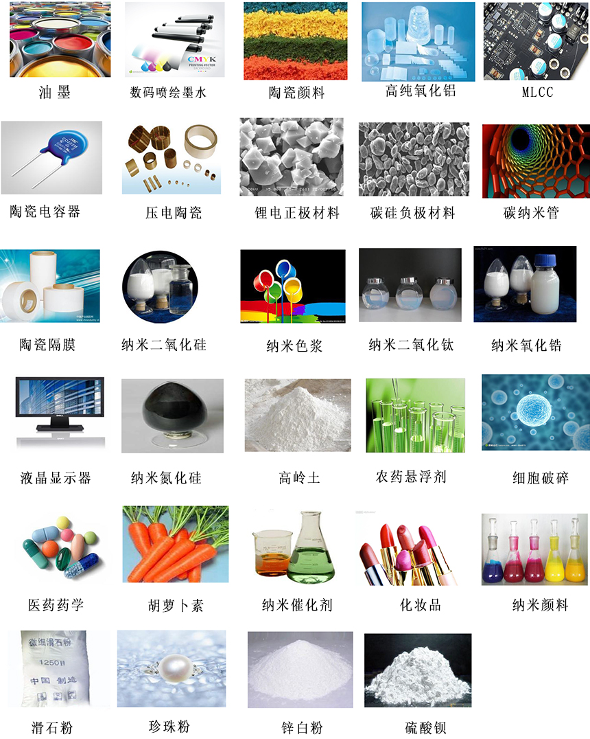 陶瓷材料、電池材料、數(shù)碼噴墨、高性能涂料、制藥等領(lǐng)域的研究與測(cè)試。